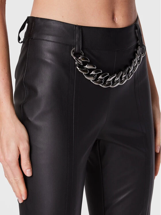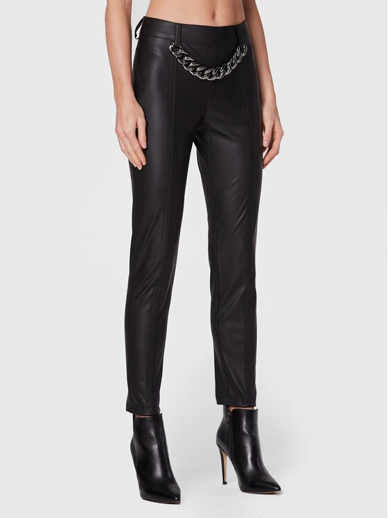 Rinascimento Γυναίκες Δερμάτινα Παντελόνια Παντελόνι από απομίμηση δέρματος CFC0018700002 Μαύρο Regular Fit